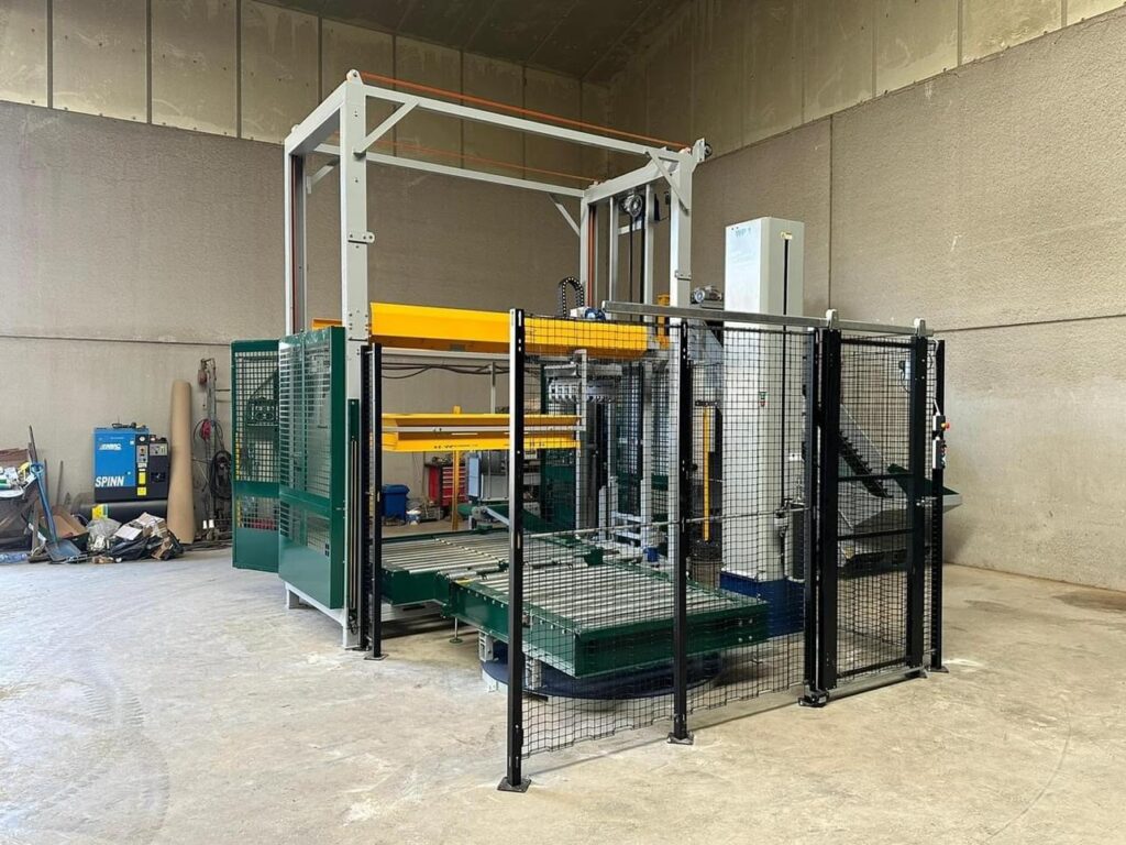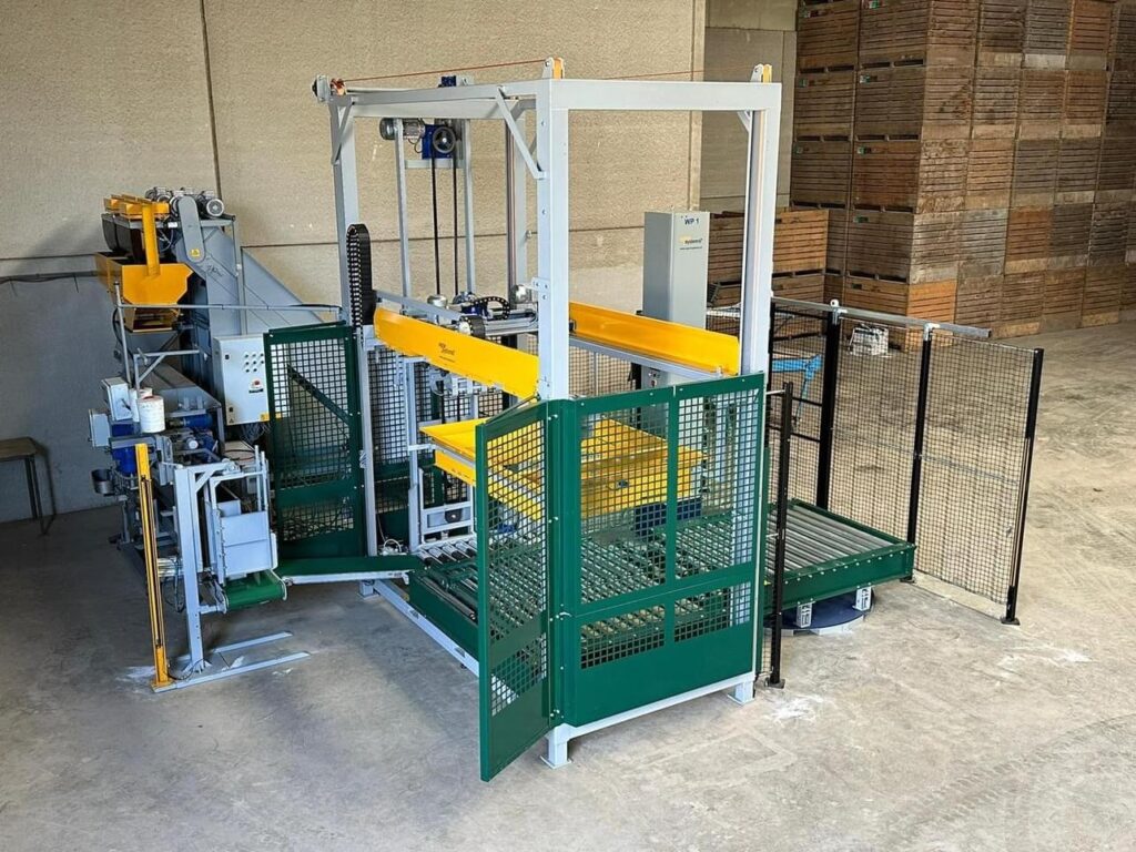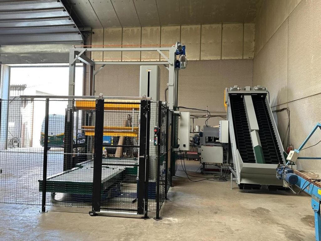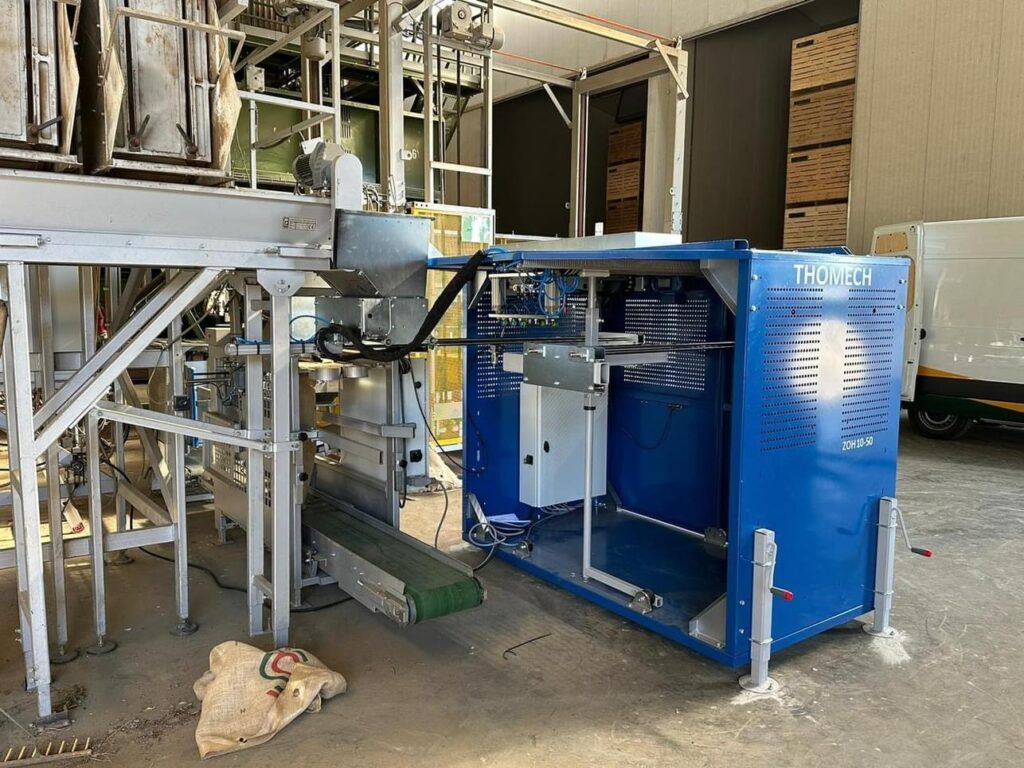 • Dubbele weger gecombineerd met een nieuwe snelle palletisseermachine inclusief rollenbanen en wikkelaar