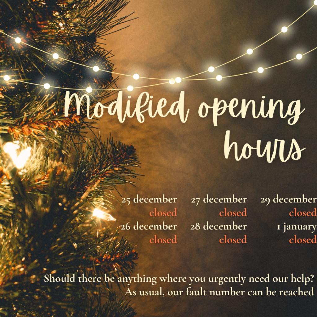 The holidays are upon us again and this means we have modified opening hours. During Christmas and the days between Christmas and New Year, we are closed. From 2 January, we will be open again.