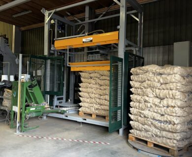 Nieuwe palletiseermachine van Agrar Systems geplaatst bij een klant in Biddinghuizen.