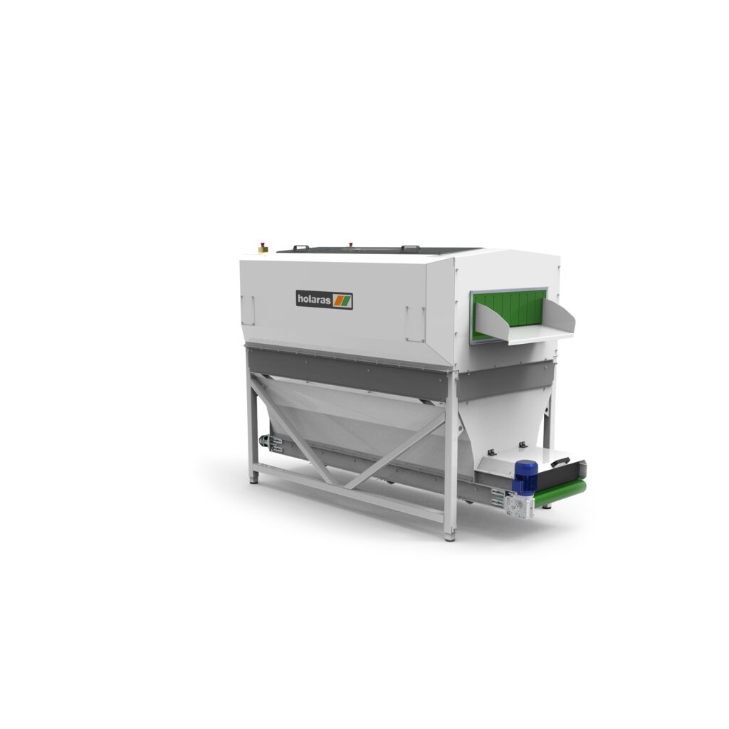 De Holoras uienafstaarter is speciaal ontworpen voor het afstaarten van uien en bloembollen. Door het hoge toerental en de speciale vorm van de messen ontstaat een sterke luchtstroom. Deze luchtstroom zuigt de uienstaarten tussen de spijlen van de trilzeef, waarna ze door de scherpe messen net onder de zeef afgesneden worden.