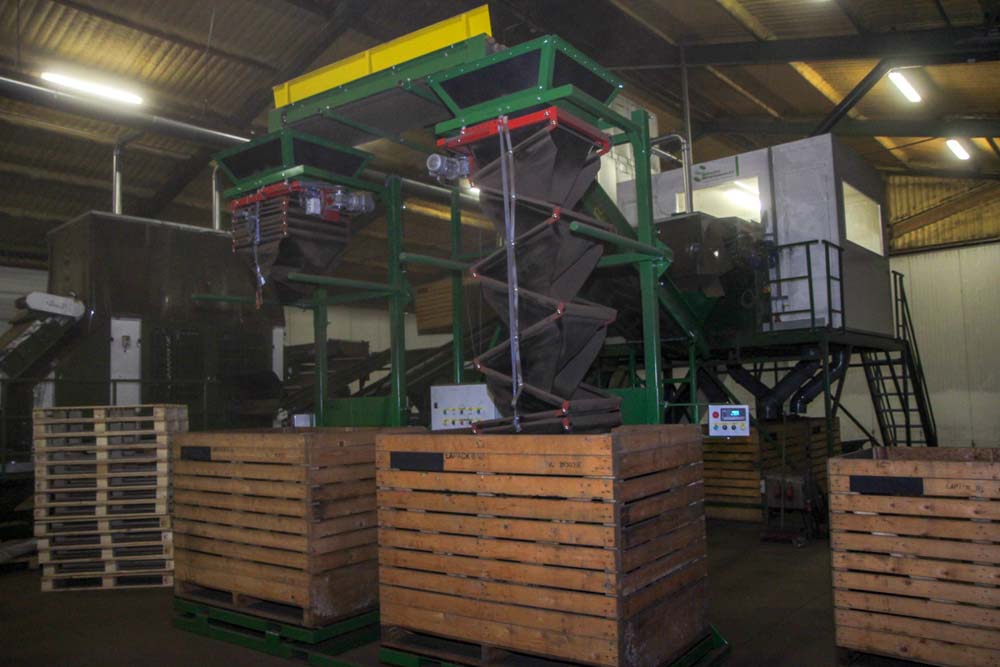 Dubbele bigbagvuller voorzien van een automatische valbreker met valchutes. De bigbagvuller is geschikt voor bigbags maar ook kisten.