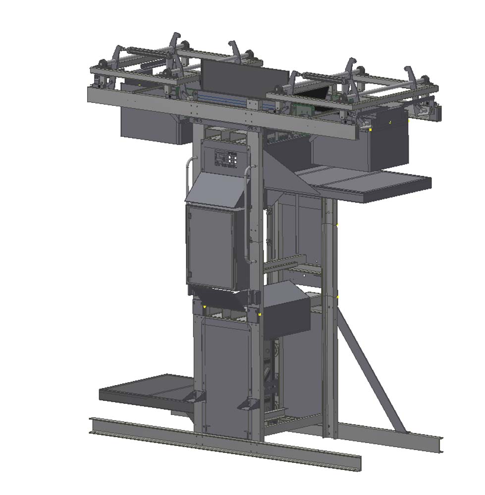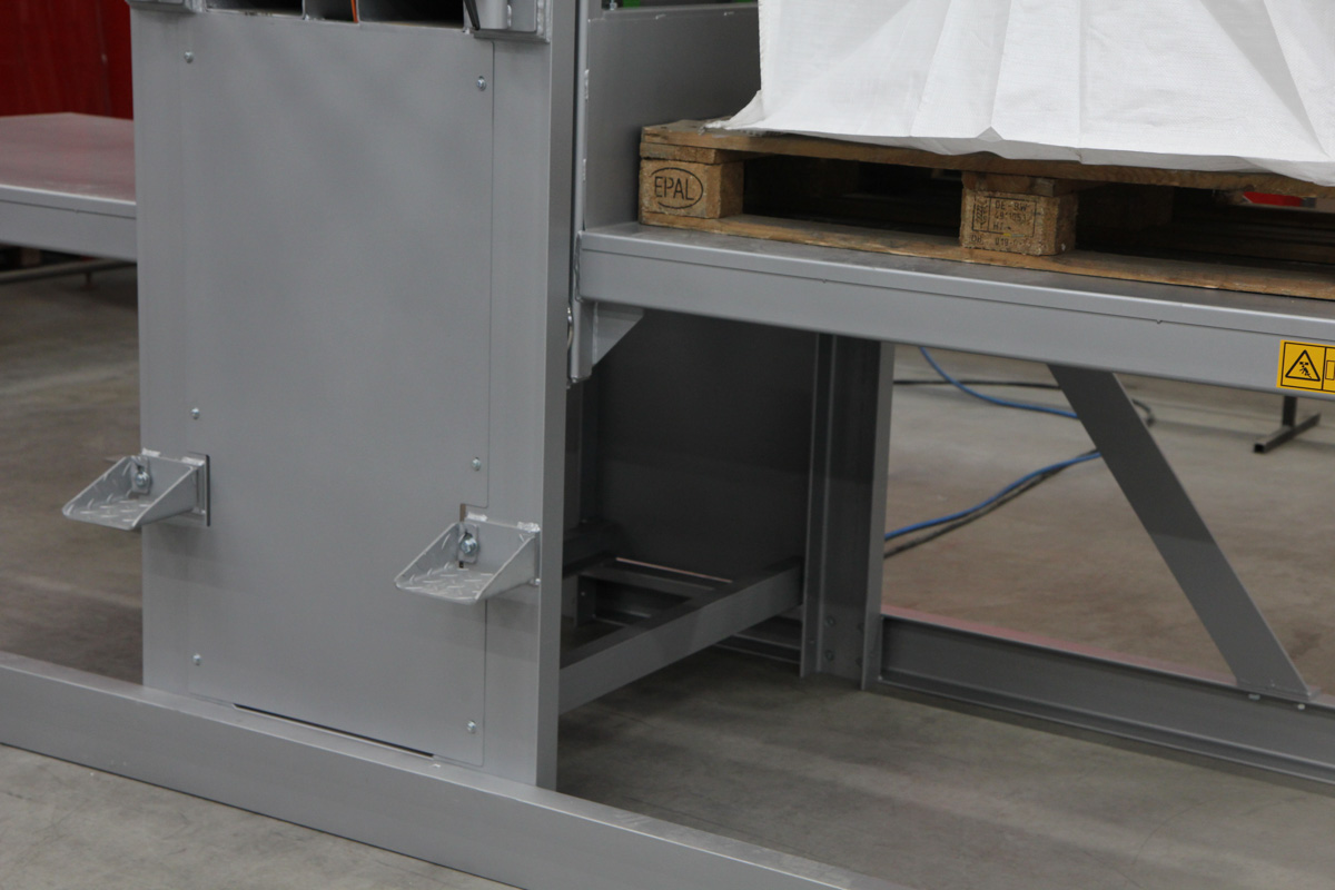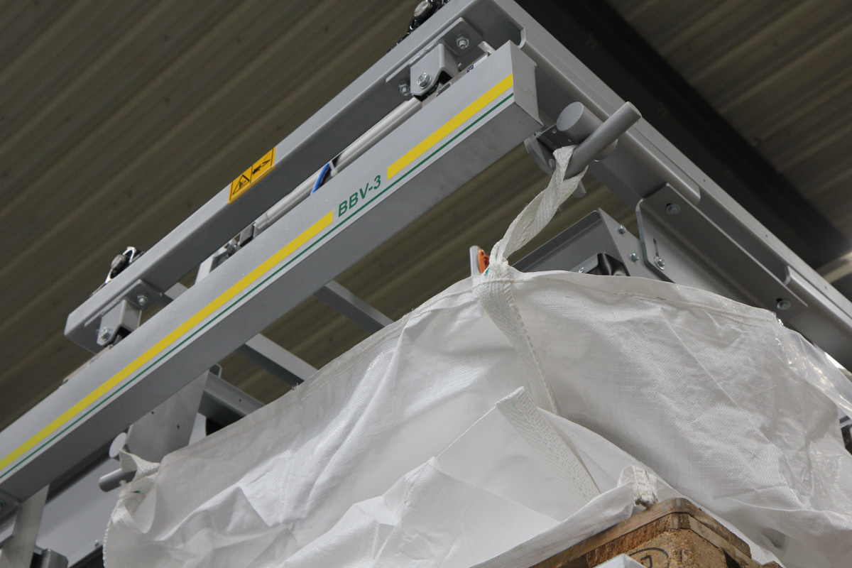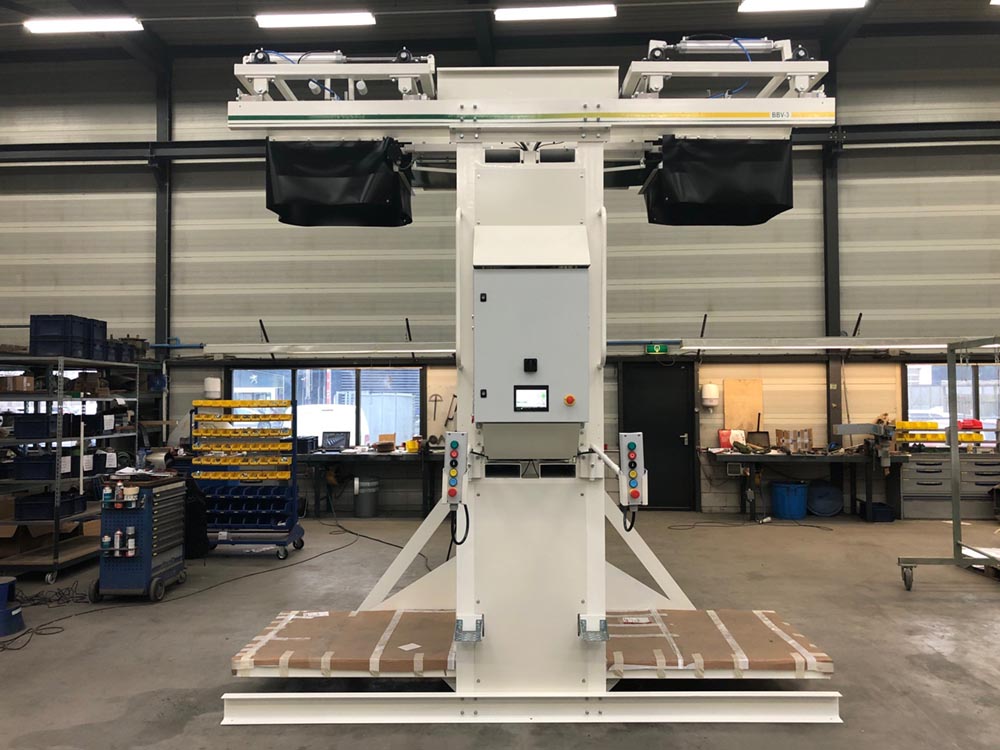 De BBV-3 is een dubbele bigbag vuller. De bigbags worden op een product vriendelijke en snelle manier gevuld door automatische hoogte aanpassing van de hefplatforms.