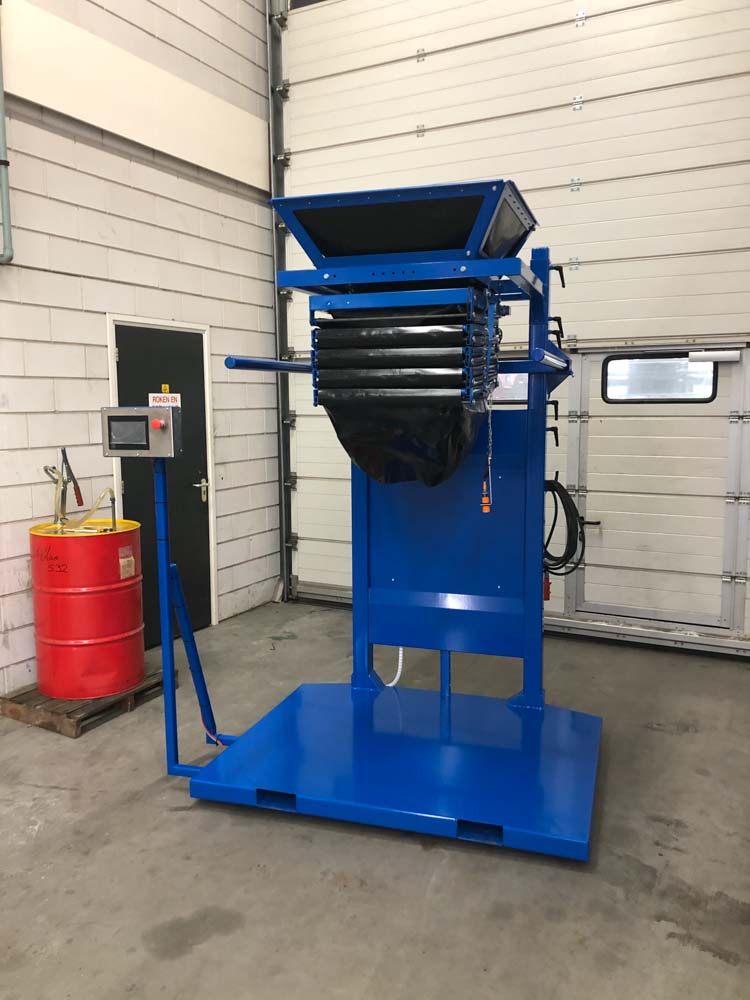 De enkele bigbagvuller type BBV-1 is voorzien van een automatische valbreker met valchutes. De bigbags en/of kisten kunnen op niveau en gewicht worden gevuld.