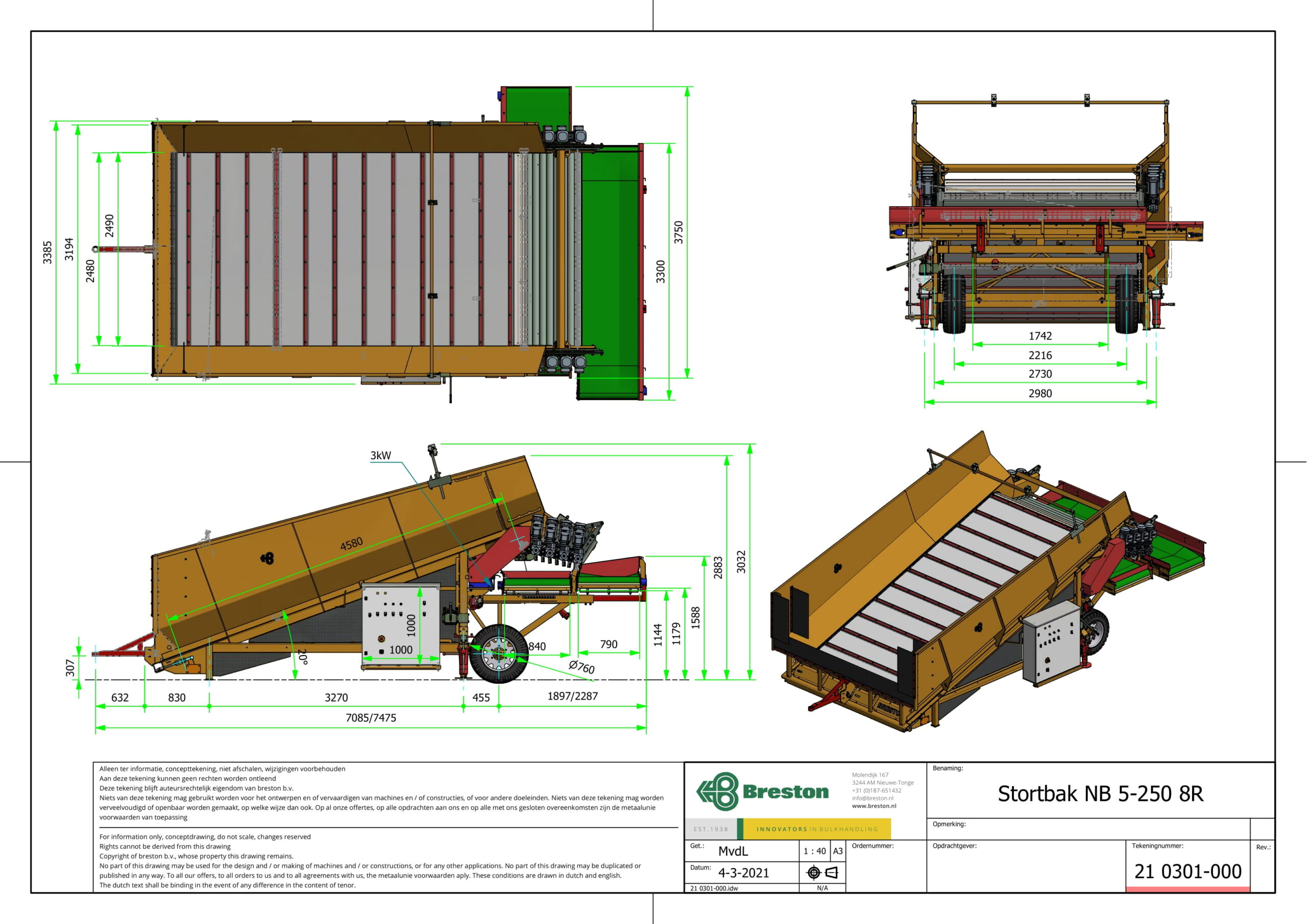 Breston stortbakken staan garant voor duurzaamheid en betrouwbaarheid. De stortbak vormt het hart van de inschuurlijn en wordt gebruikt als ontvangst, reinigings en of sorteerinstallatie.
