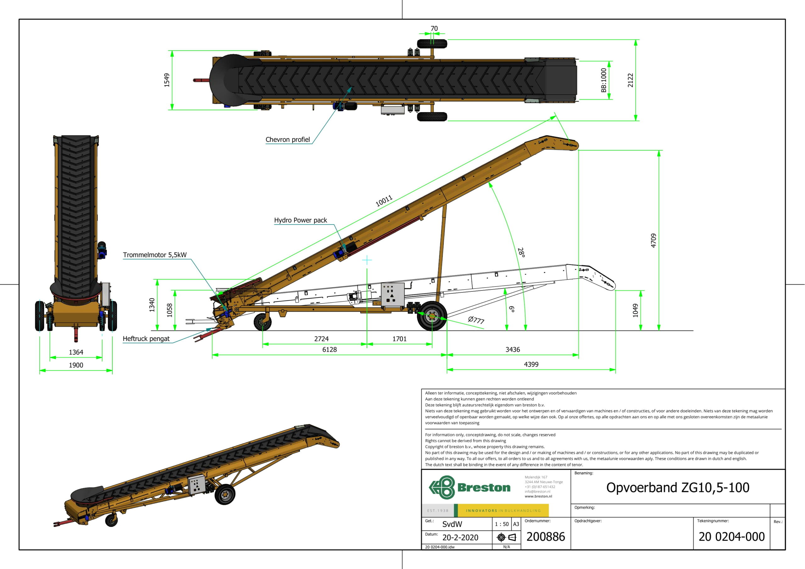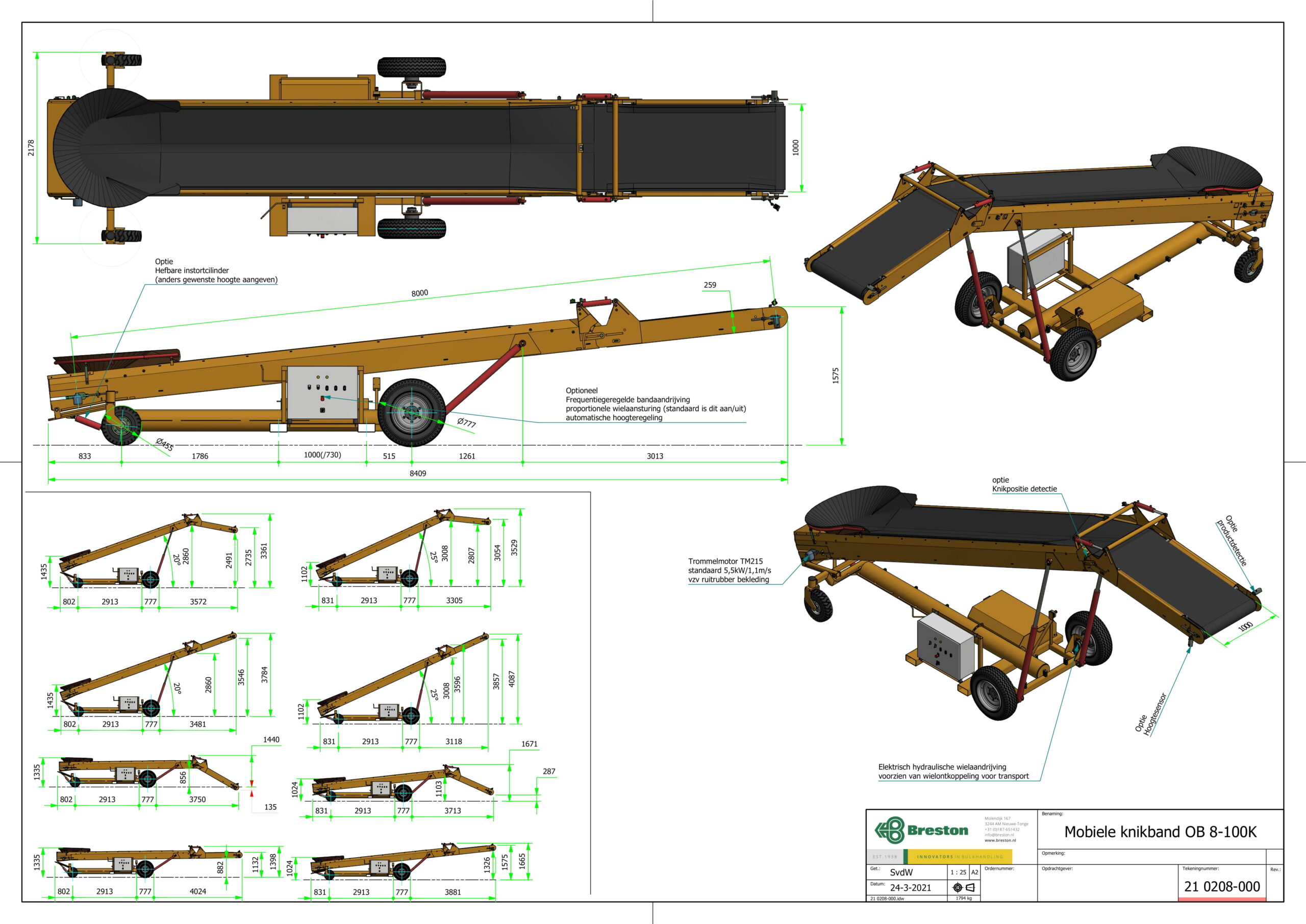 Breston opvoerbanden zijn uitermate geschikt voor het transporteren van producten op een vaste afstand. De band kan namelijk niet uitschuiven maar is wel elektrisch en hydraulisch is hoogte verstelbaar.