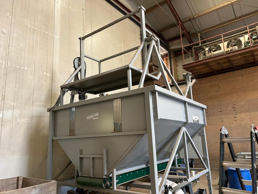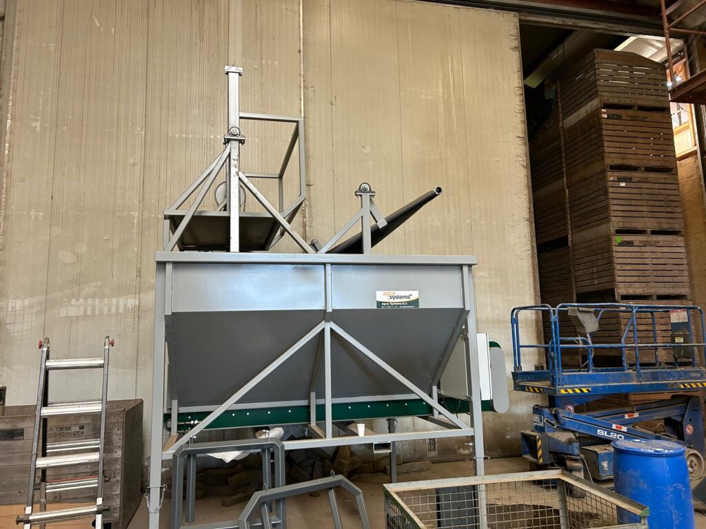 Deze op maat gemaakte voorraad bunker met elektrische kistenkantelaar!